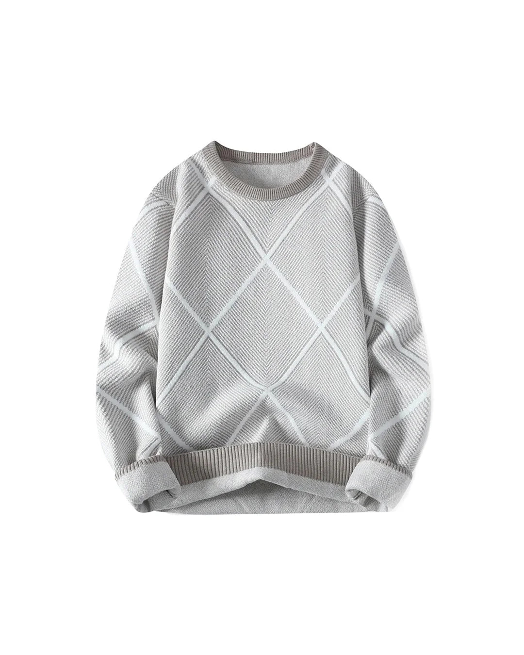 Crafted from soft knit fabric, it features a subtle geometric pattern that adds texture without overpowering the look. The midweight construction makes it comfortable for everyday wear, while the relaxed fit allows for easy layering through cooler days.