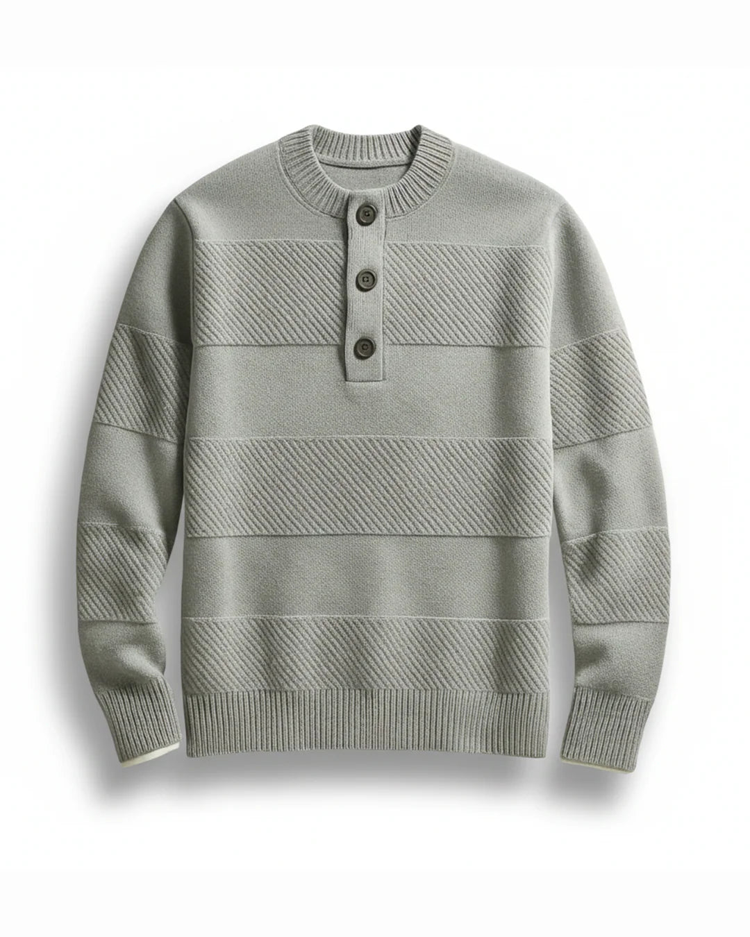 Crafted from soft knit fabric, it features subtle horizontal knit detailing and a classic buttoned henley neckline for a relaxed yet put-together look. The ribbed cuffs and hem provide structure, while the midweight knit makes it easy to layer through cooler days.